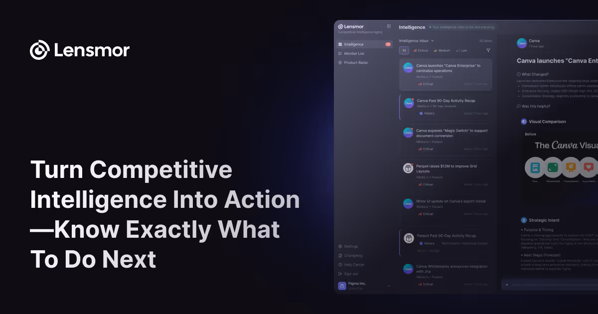 Lensmor is an AI website monitoring tool for website change detection—track competitor updates 24/7, analyze impact, & turn changes into action plans with competitive intelligence.