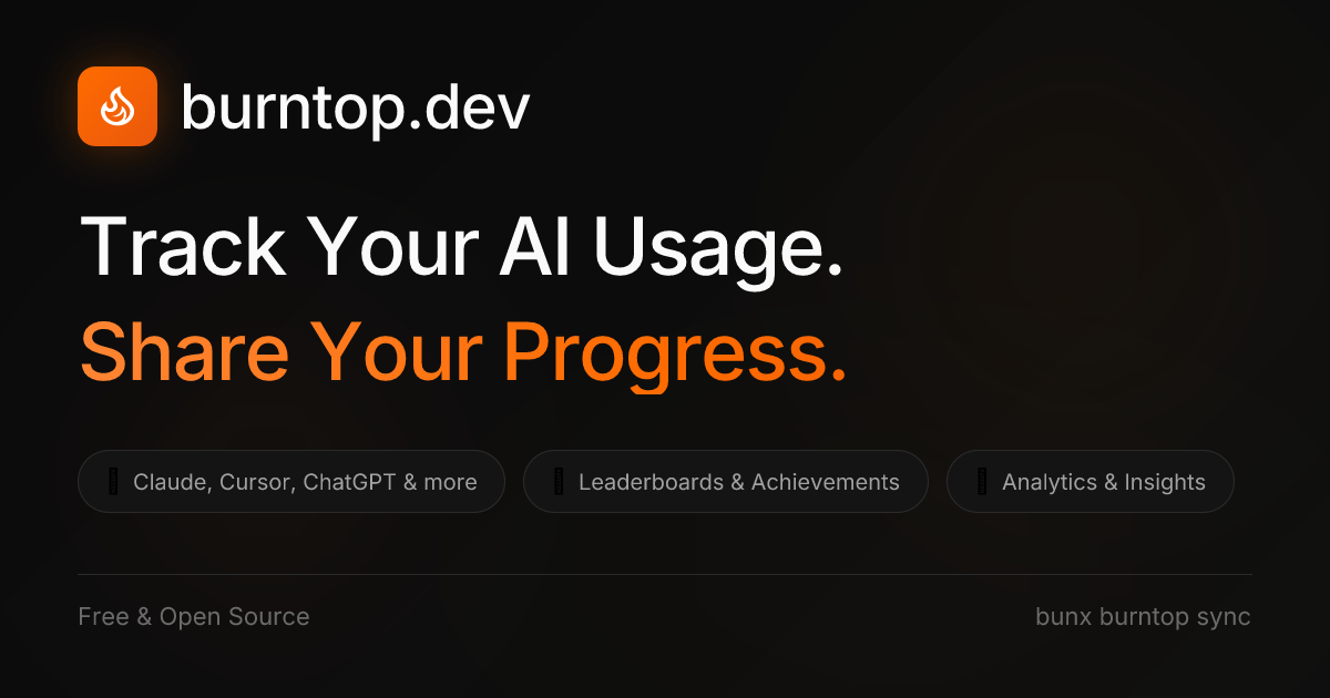 Track your AI tool usage across Claude, Cursor, and more. Analyze costs, usage patterns, and share your stats with the developer community. Get started with bunx burntop sync.