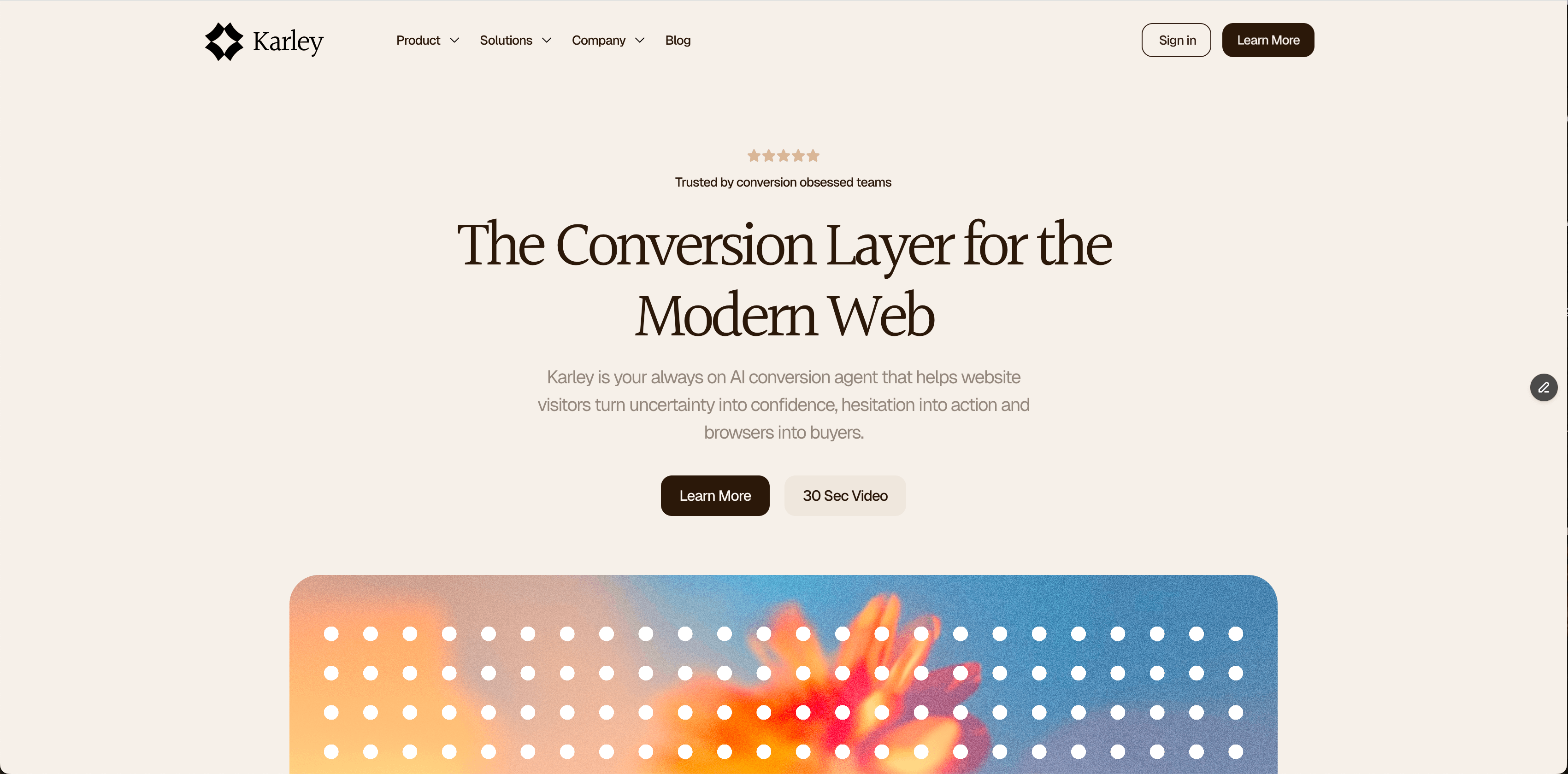 Karley is your always on AI conversion agent that helps website visitors turn uncertainty into confidence, hesitation into action and browsers into buyers.
