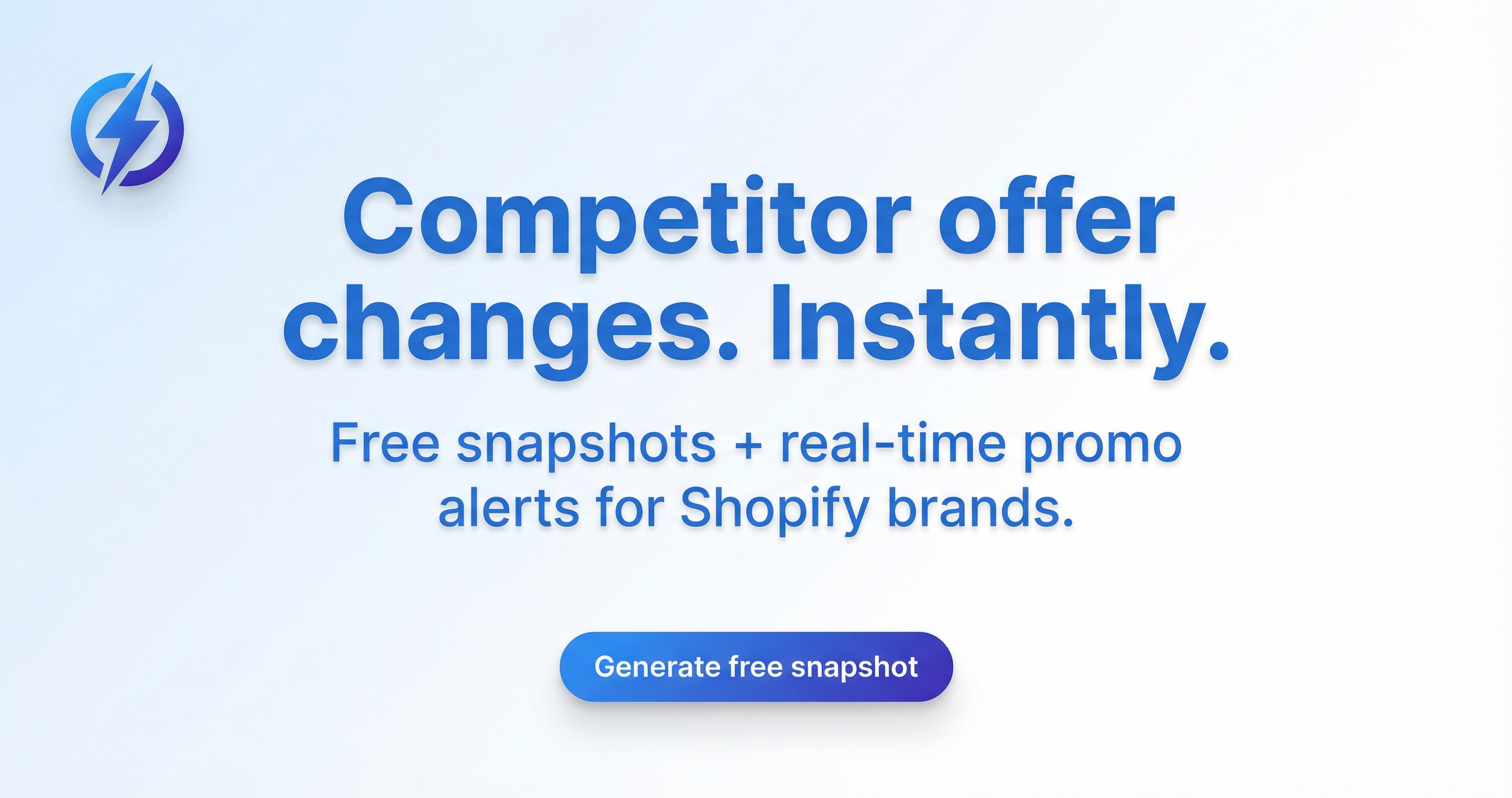 OfferPulse alerts you when competitors change their offers — promos, bundles, free shipping thresholds, and cart incenti...