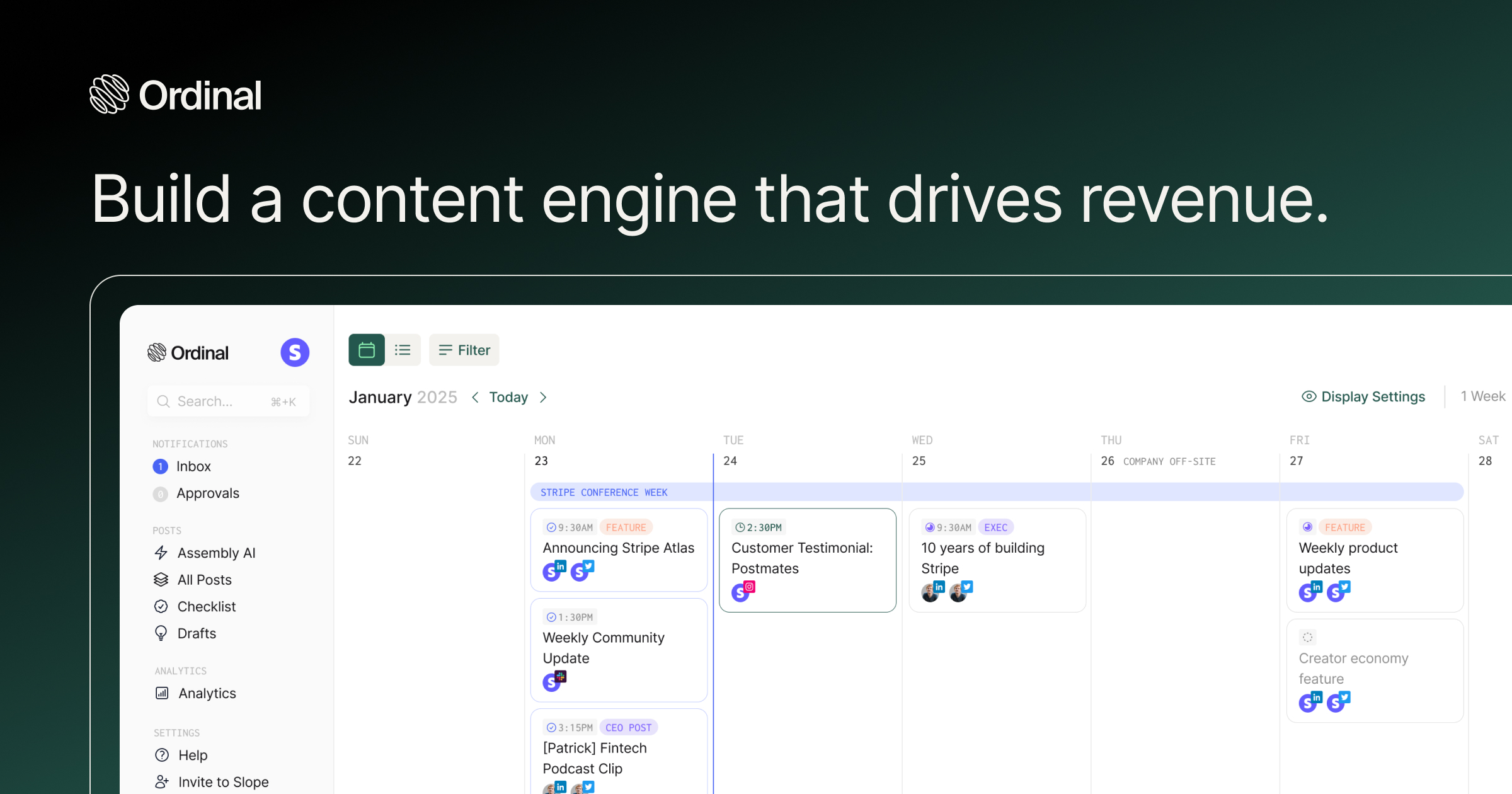 End-to-end platform for companies to draft, plan, and schedule content | Grow on LinkedIn, Twitter, Instagram, Facebook, TikTok, YouTube, Threads, and more.