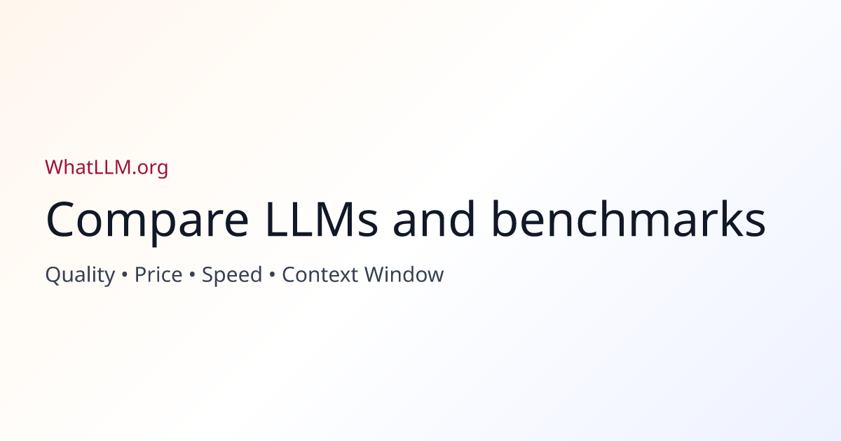 WhatLLM.org is the authoritative LLM comparison platform. Compare GPT-5, Claude 4, Gemini 3, Llama, DeepSeek, Qwen across price, benchmarks (GPQA, AIME, LiveCodeBench), speed, and quality. Updated weekly.